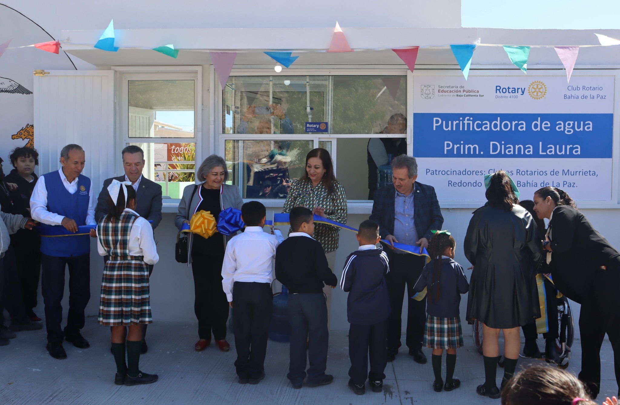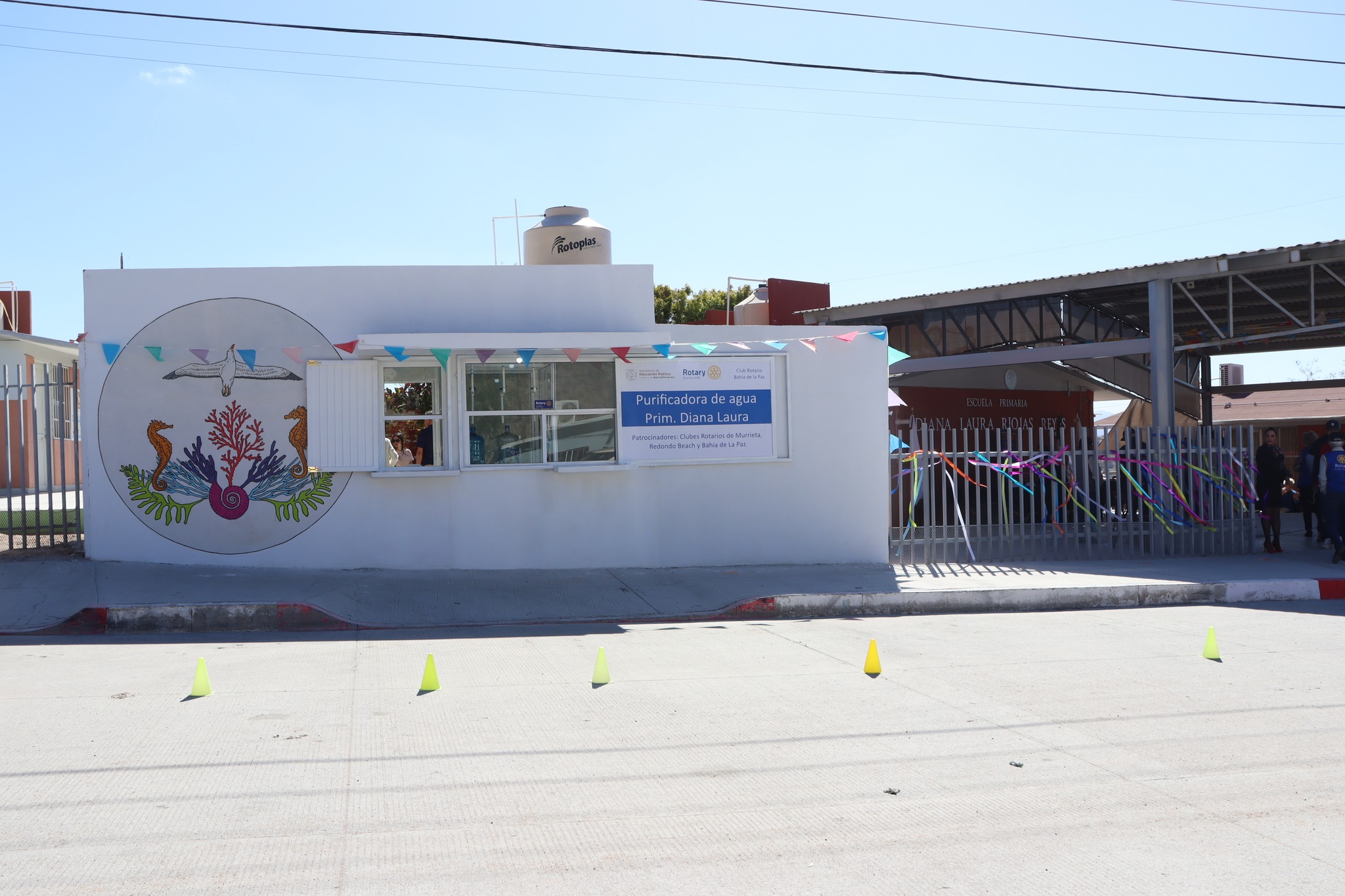 Donada por el Club Rotario Bahía de La Paz. El evento fue presidido por la titular de la SEP, Alicia Meza Osuna, en representación del gobernador Víctor Manuel Castro Cosío. La producción de la planta, cuya capacidad de producción diaria es de 80 garrafones, se destinará al consumo de la institución educativa y de familias que viven en las cercanías de la escuela, ubicada en la colonia Loma Obrera.